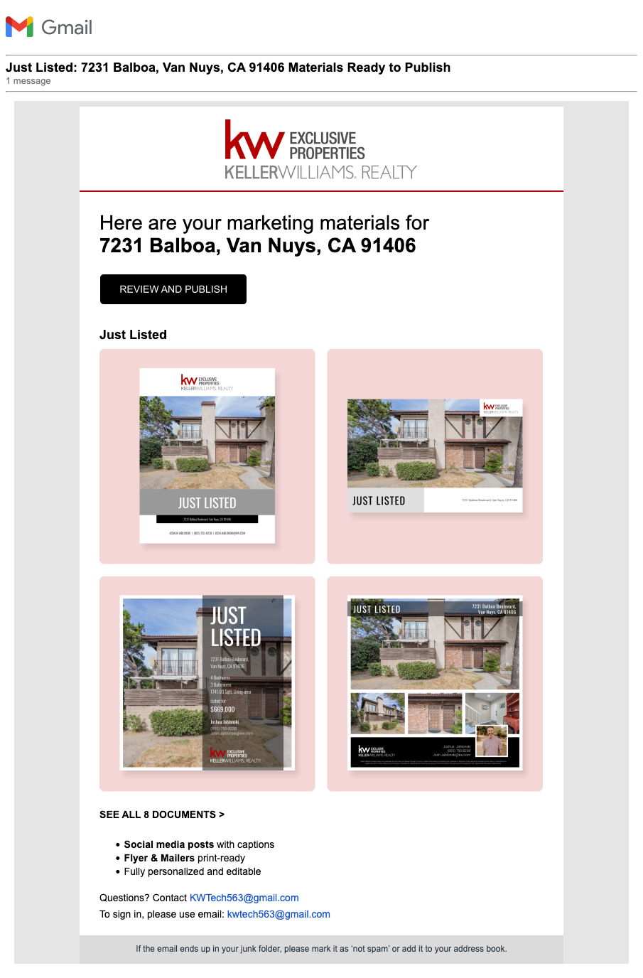 Soon, you’ll receive automated, ready-to-use marketing packages for every listing status change: